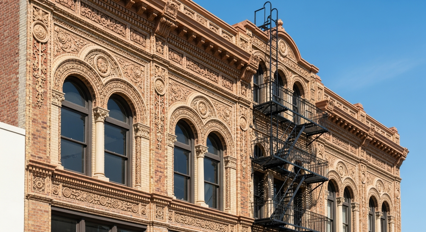 A historic preservation group in Pasadena needed detailed documentation of four terra cotta and brick facades on a 1920s-era commercial building before a seismic retrofit project. The facades featured ornamental cornices, arched windows, and decorative medallions that needed to be preserved or replicated if damaged during construction. Traditional measurement methods could not capture the complex ornamental geometry accurately.