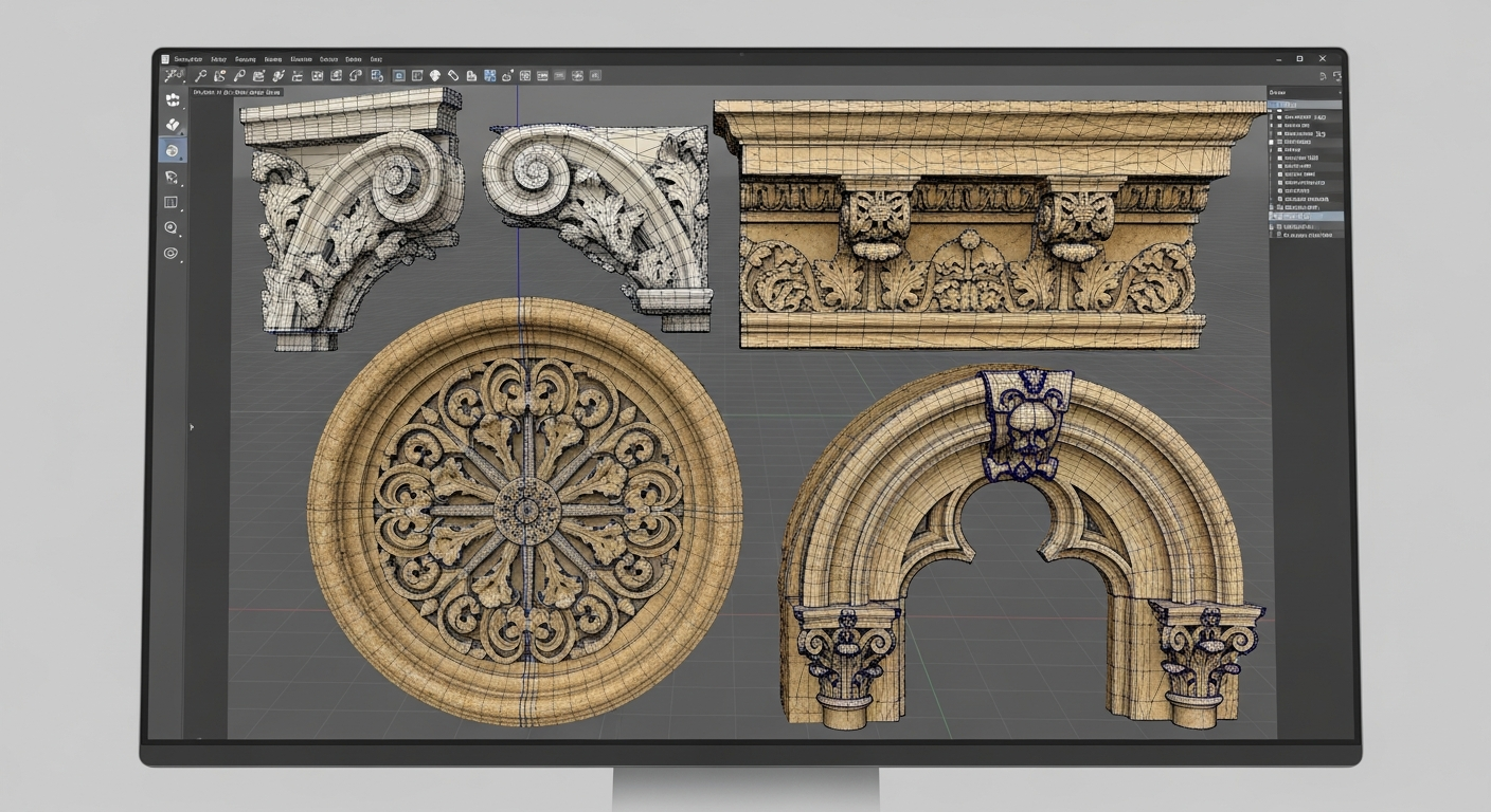 - Ornamental details captured at sub-millimeter accuracy for replication